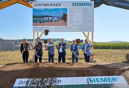 Siemens Mobility hat heute (29.09.2025) in Luhe-Wildenau, Kreis Neustadt/Waldnaab, gemeinsam mit Partnern den symbolischen Spatenstich für eine neue Fertigung von Batteriesystemen für Schienenfahrzeuge gefeiert.