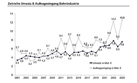 Die Mitgliedsunternehmen des Verbands der Bahnindustrie in Deutschland (VDB) schreiben in Summe ihre „starken“ Zahlen im ersten Halbjahr 2025 fort. Dies teilte der Verband heute (13.11.2025) mit.