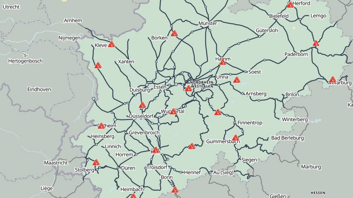 Die interaktive Karte ist als Jahresübersicht angelegt und soll in regelmäßigen Abständen aktualisiert werden. Abgebildet werden größere Baumaßnahmen mit anhaltenden Auswirkungen auf den Regional- und Nahverkehr: Derzeit sind es rund 100. Die interaktive Karte soll als Erstinformation für Fahrgäste dienen und beinhaltet wesentliche Informationen zu den Bauarbeiten wie Streckenabschnitt, Zeitraum und betroffene Linien. Der von den drei Aufgabenträgern in Zusammenarbeit mit dem Kompetenzcenter Integraler Taktfahrplan (KCITF) entwickelte Baustellenüberblick ist auf zuginfo.nrw abrufbar. Auf dieser Plattform werden Meldungen direkt aus der „SPNV-Regiezentrale“ eingespielt, in der sich die größten nordrhein-westfälischen Eisenbahnverkehrsunternehmen zusammengeschlossen haben und an die sie ihre Daten liefern. (bm/jb)