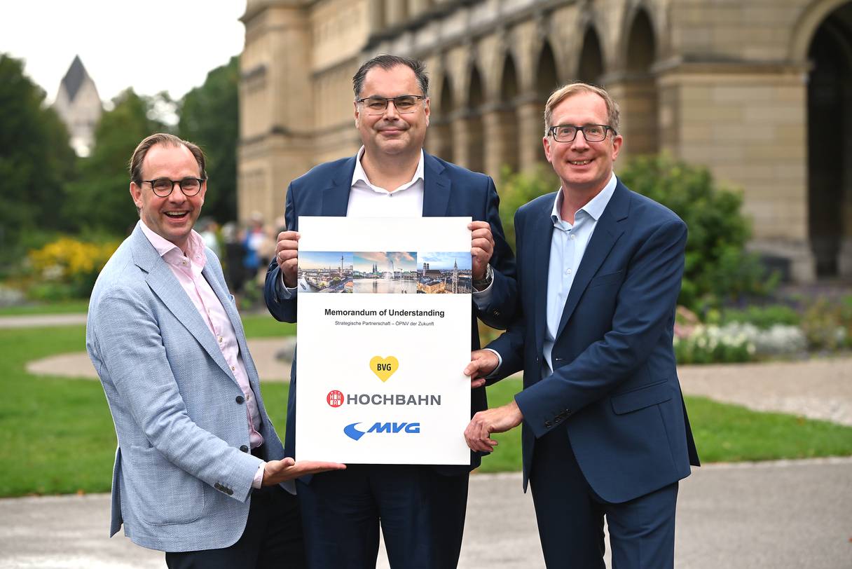 Die Chefs der Berliner Verkehrsbetriebe (BVG), der Hamburger Hochbahn (HHA) und der Münchner Verkehrsgesellschaft (MVG) haben dazu jetzt ein Memorandum of Understanding (MoU) für eine strategische Partnerschaft unterzeichnet. Die Kooperation konzentriert sich zunächst auf drei zentrale Anwendungsfelder: